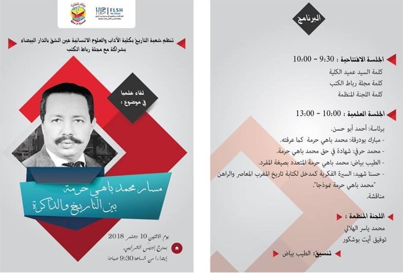 Assdasouk إعلان مسار محمد باهي حرمة بين التاريخ و الذاكرة موضوع لقاء بكلية الأدب عين الشوق بالدارالبيضاء