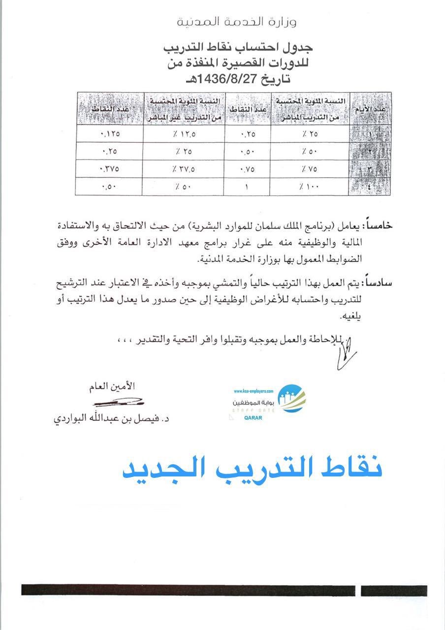بوابة الموظفين On Twitter في مفاضلة الترقيات تحتسب نقاط التدريب في المرتبة الحالية الدورات القصيرة المعتمدة إذا كان الحصول عليها قبل تاريخ 1436 8 27هـ تحتسب بمعدل كل 12 يوم تديرب مباشر بنقطة مرفق الجدول وإذا