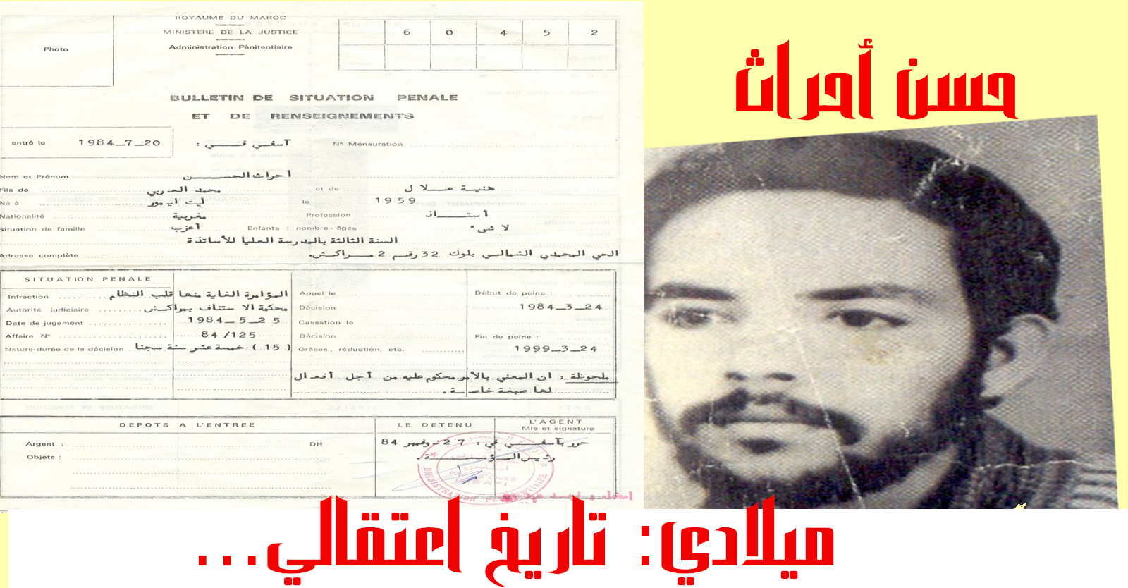 مغرب النضال والصمود من أجل بديل جذري حسن أحراث ميلادي تاريخ اعتقالي