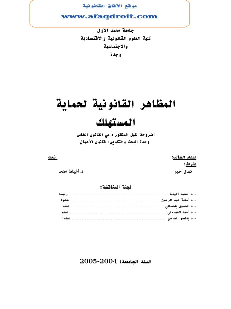 المظاهر القانونية لحماية المستهلك 1 Pdf