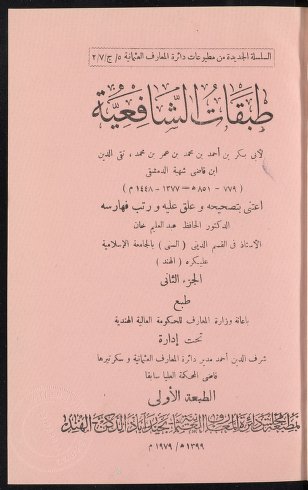 كتاب طبقات الشافعية تأليف أبو بكر بن أحمد بن محمد بن عمر الأسدي الشهبي الدمشقي تقي الدين ابن قاضي شهبة الجزء الثاني تاريخ النشر 1399هج 1979 م الناشر