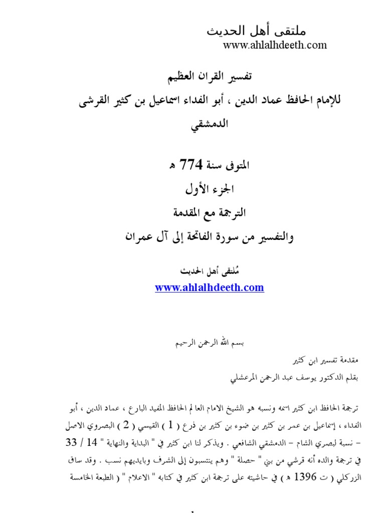 تفسير ابن كثير الجزء الأول 1