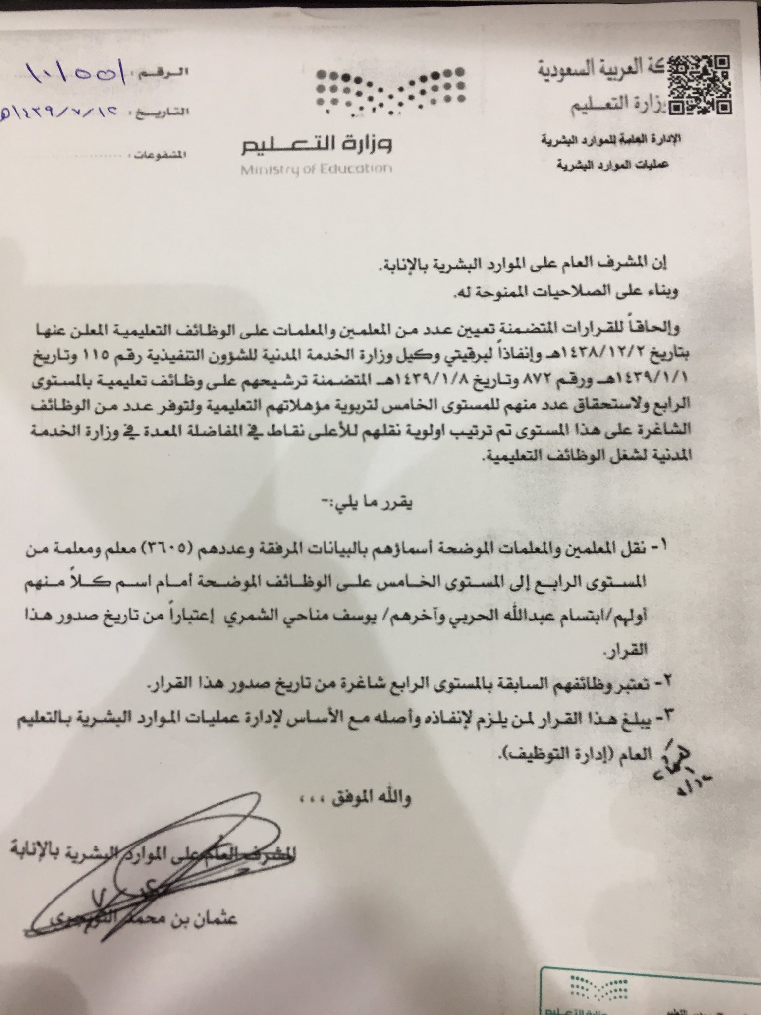 لطيفة الدليهان Auf Twitter قرار نقل بعض المعلمين والمعلمات الذين تم تعيينهم على المستوى الرابع إلى المستوى الخامس