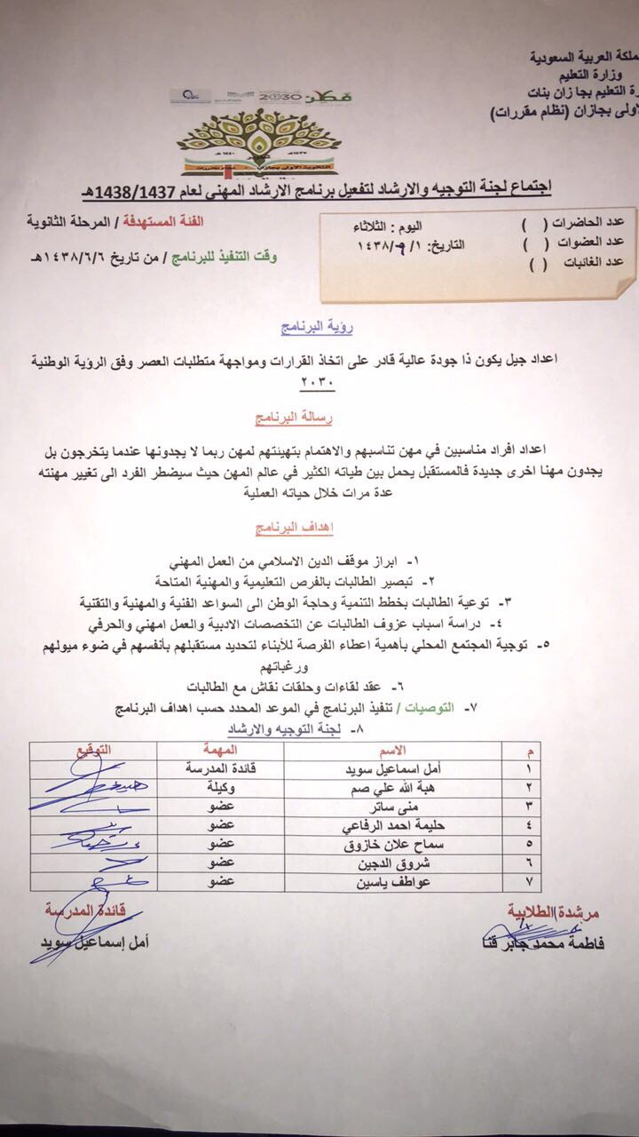 مشاريع وانشطة و فعاليات الثانوية الأولى بجازان الاسبوع المهني التعليمي