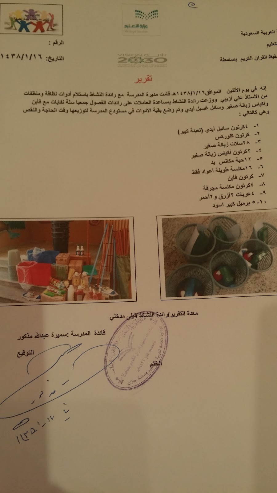 النشاط المدرسي رائدة نشاط ليلى عواجي مدخلي مشاريع العمل التطوع في مجمع تحفيظ صامطة