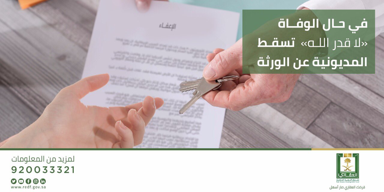 صندوق التنمية العقارية Pa Twitter مستفيد برنامج القرض العقاري يسقط عنه القرض في حال الوفاة لا سمح الله