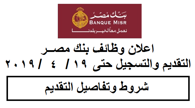 اعلان وظائف بنك مصر للمؤهلات العليا والفوق متوسط والتقديم حتى 19 ابريل 2019
