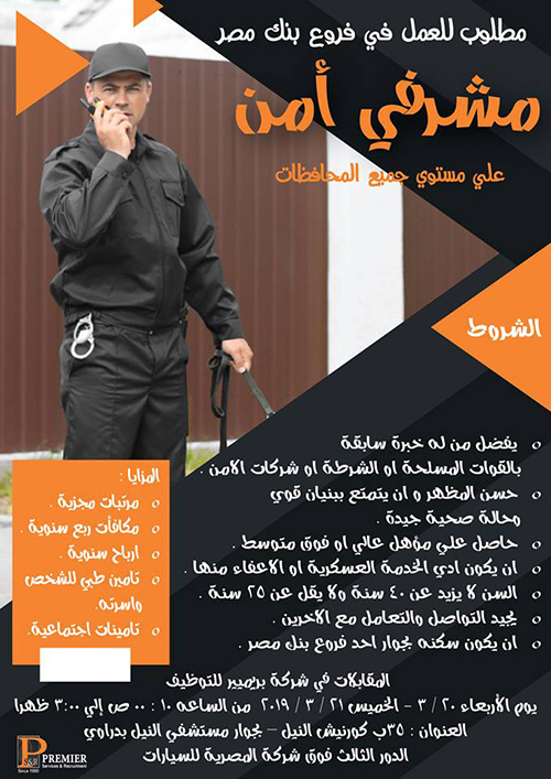 اعلان وظائف بنك مصر يطلب مشرفبن امن بكافة المحافظات بمرتبات مجزية 2019