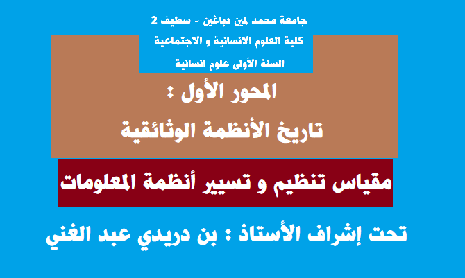 تاريخ الأنظمة الوثائقية مقياس تنظيم و تسيير أنظمة المعلومات