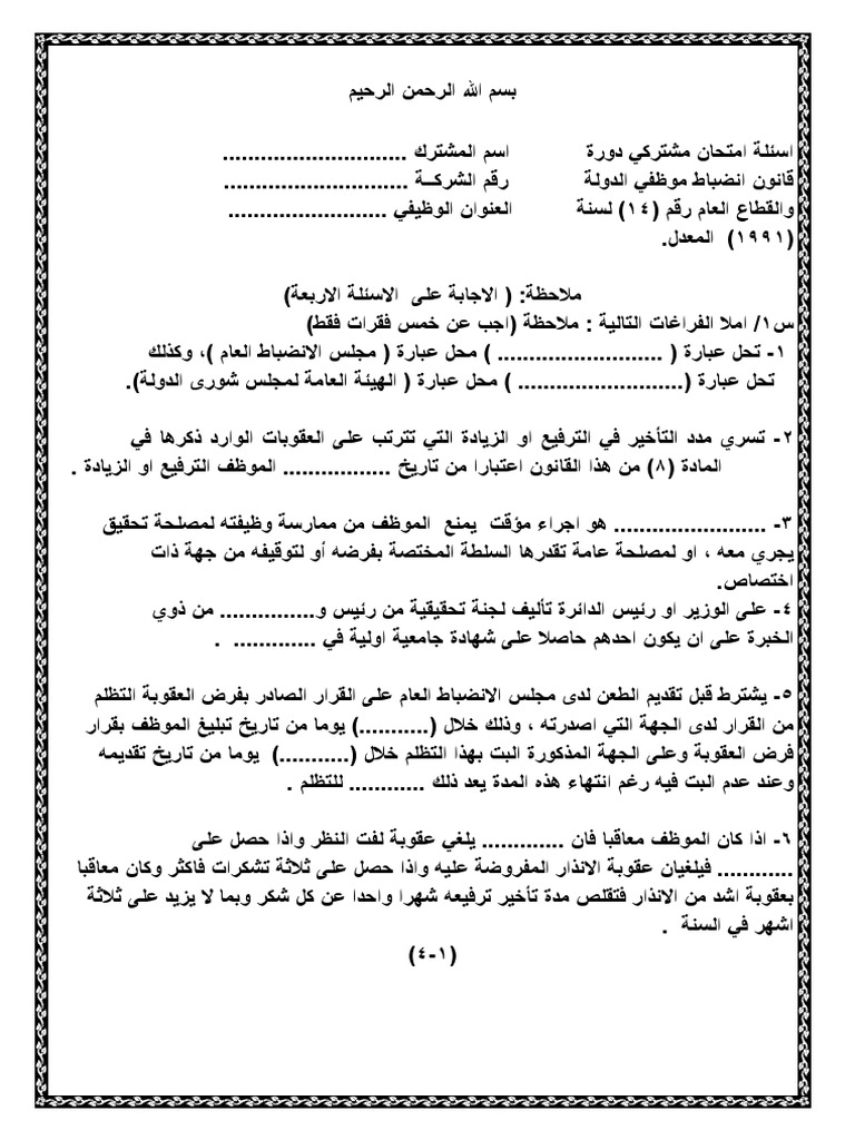اسئلة دورة قانون انضباط موظفي الدولة