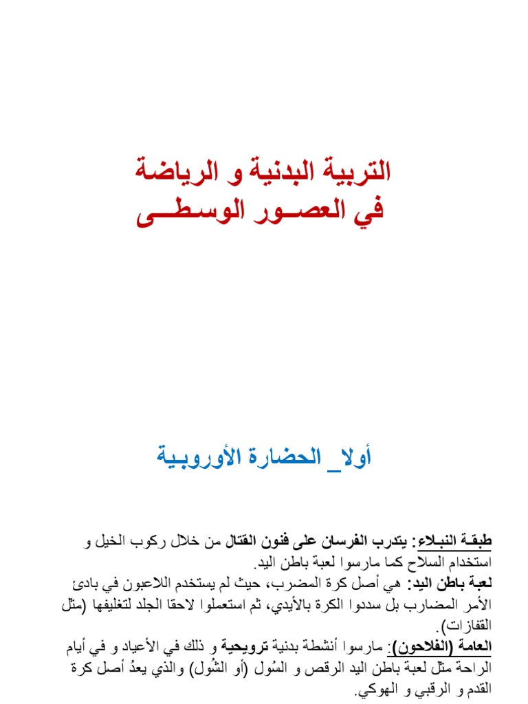 التربية البدنية و الرياضة في العصــور الوسـطـــى