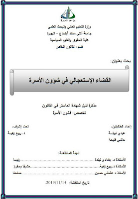 مذكرة ماستر القضاء الإستعجالي في شؤون الأسرة Pdf
