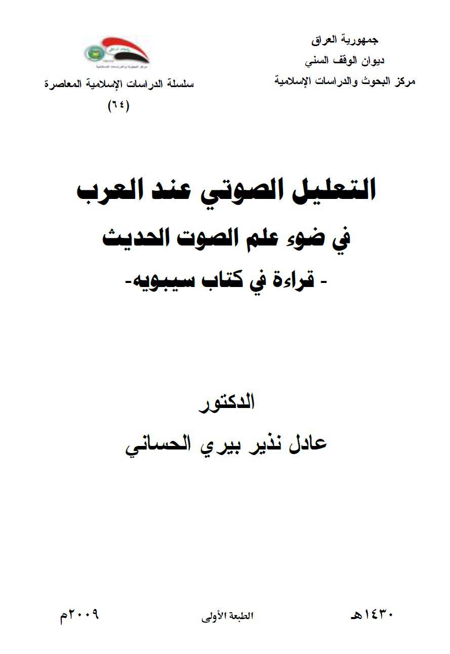 التعليل الصوتي عند العرب في ضوء علم الصوت الحديث قراءة في كتاب سيبويه ـ عادل نذير بيري الحساني مكتبة وملتقى علم الأصوات Phonetics Acoustics