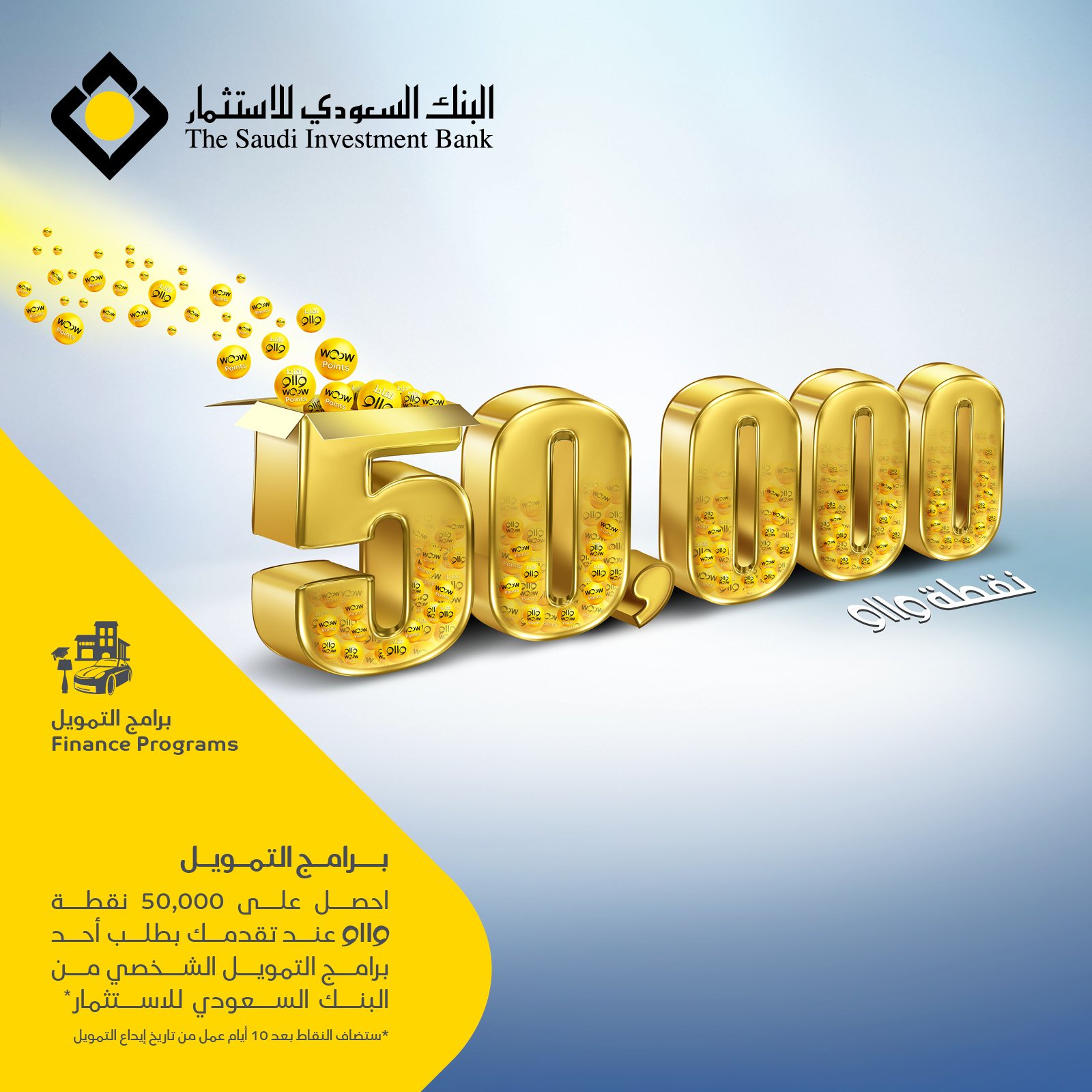 البنك السعودي للاستثمار Pa Twitter برامج التمويل احصل على 50 000 نقطة وااو عند تقدمك بطلب أحد برامج التمويل الشخصي من البنك السعودي للاستثمار ستضاف النقاط بعد 10 أيام عمل من تاريخ إيداع التمويل Https T Co Hi4jd3ewjm
