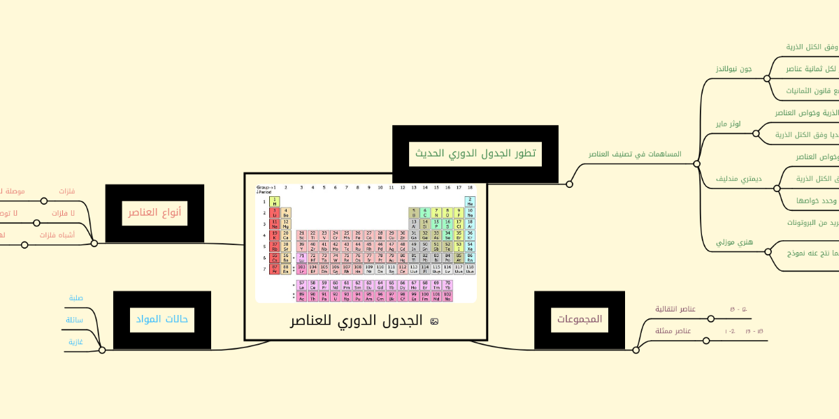 خريطة مفاهيم تصنيف العناصر في الجدول الدوري