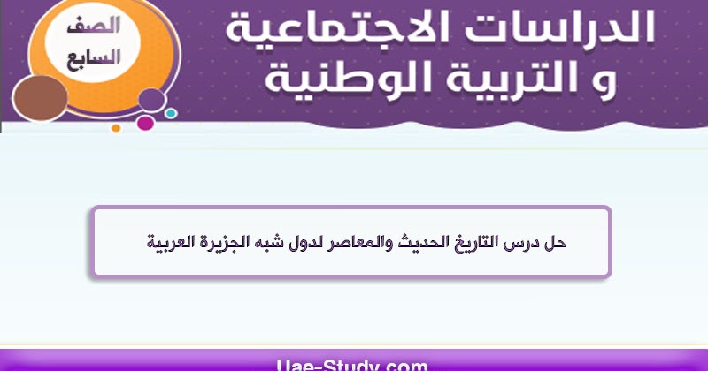 حل درس التاريخ الحديث والمعاصر لدول شبه الجزيرة العربية اجتماعيات الصف السابع