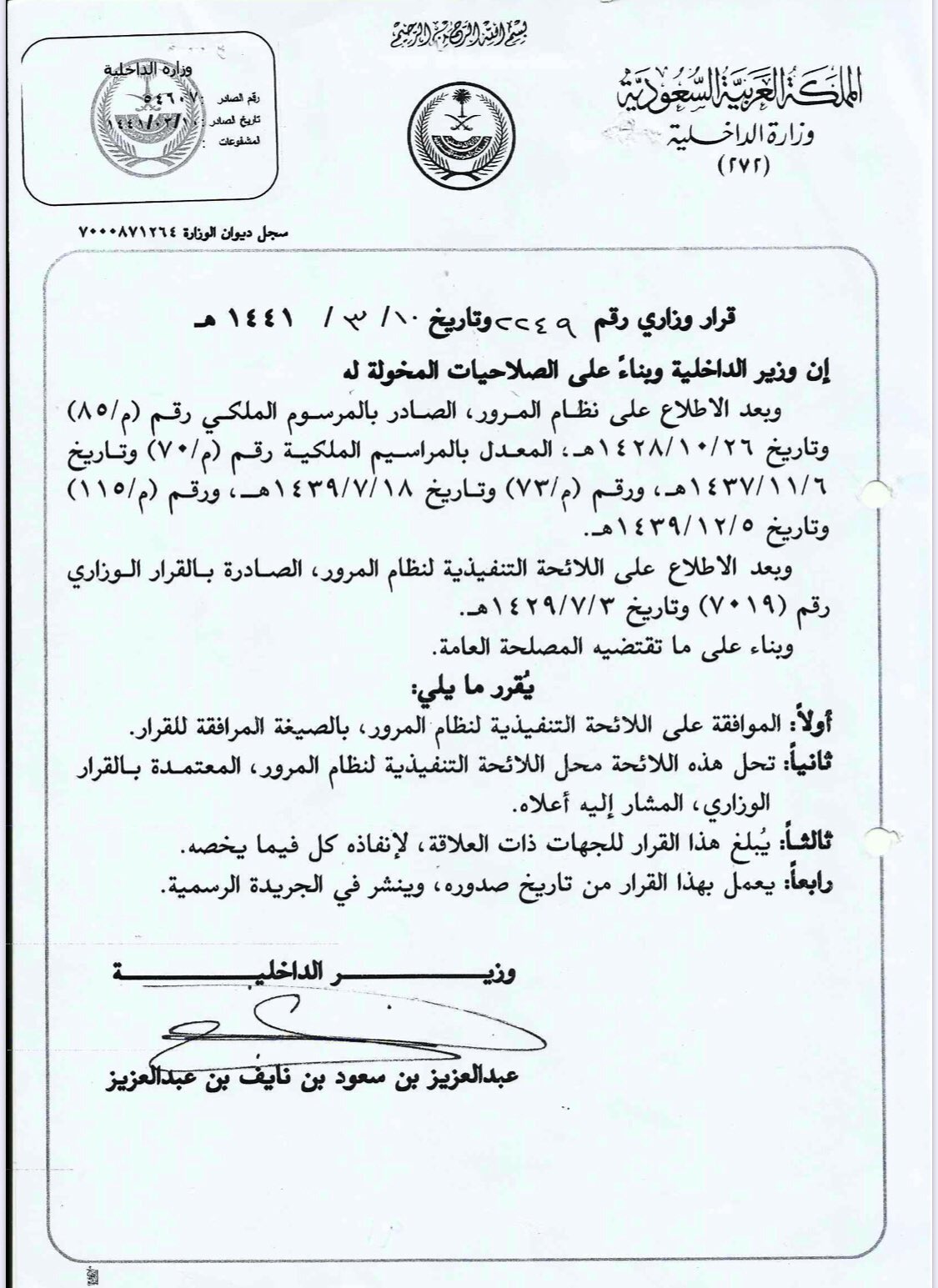 مختارات عدلية On Twitter اللائحة التنفيذية لنظام المرور الصادرة بالقرار الوزاري رقم 2249 وتاريخ 1441 3 10هـ Https T Co Qwikcgf6rz صفحات قانونية Https T Co Aedumsofug