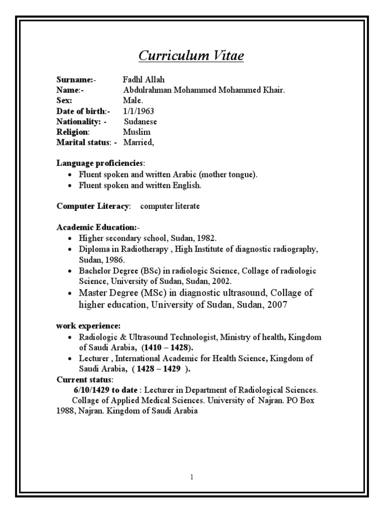 Curriculum Vitae Abdulrahman Radiology Sudan