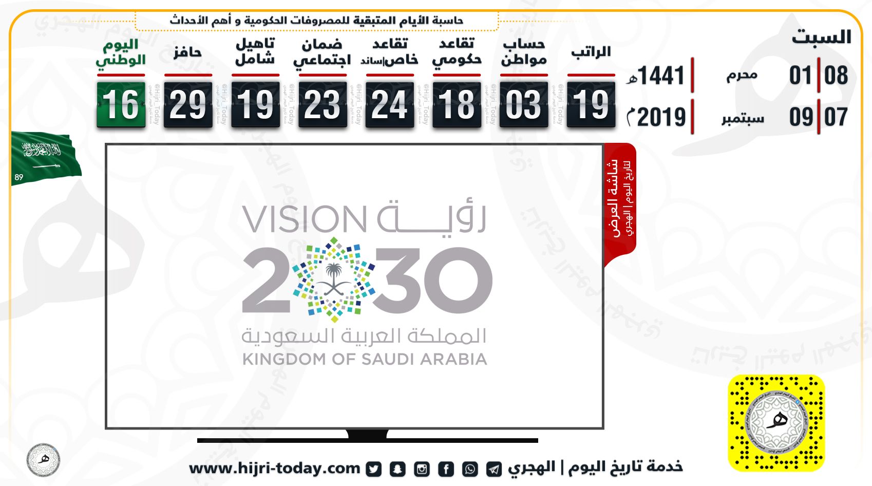 تاريخ اليوم الهجري On Twitter السبت ٠٨ محرم ٠١ ١٤٤١هـ يوافق ٠٧ سبتمبر ٠٩ ٢٠١٩م أيام متبقيه الراتب 19 ح المواطن 03 تقاعد حكومي 18 تقاعد خاص ساند 24 الضمان 23 التأهيل 19 حافز 29 اليوم الوطني 16 حسابنا على سنابشات Https T Co