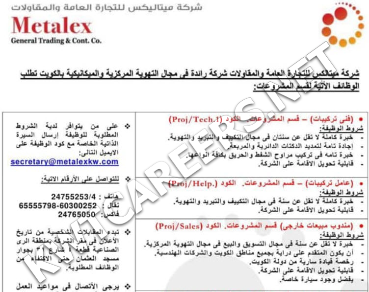 وظائف الكويت بشركة ميتاليكس للتجارة اليوم 27 ديسمبر 2018