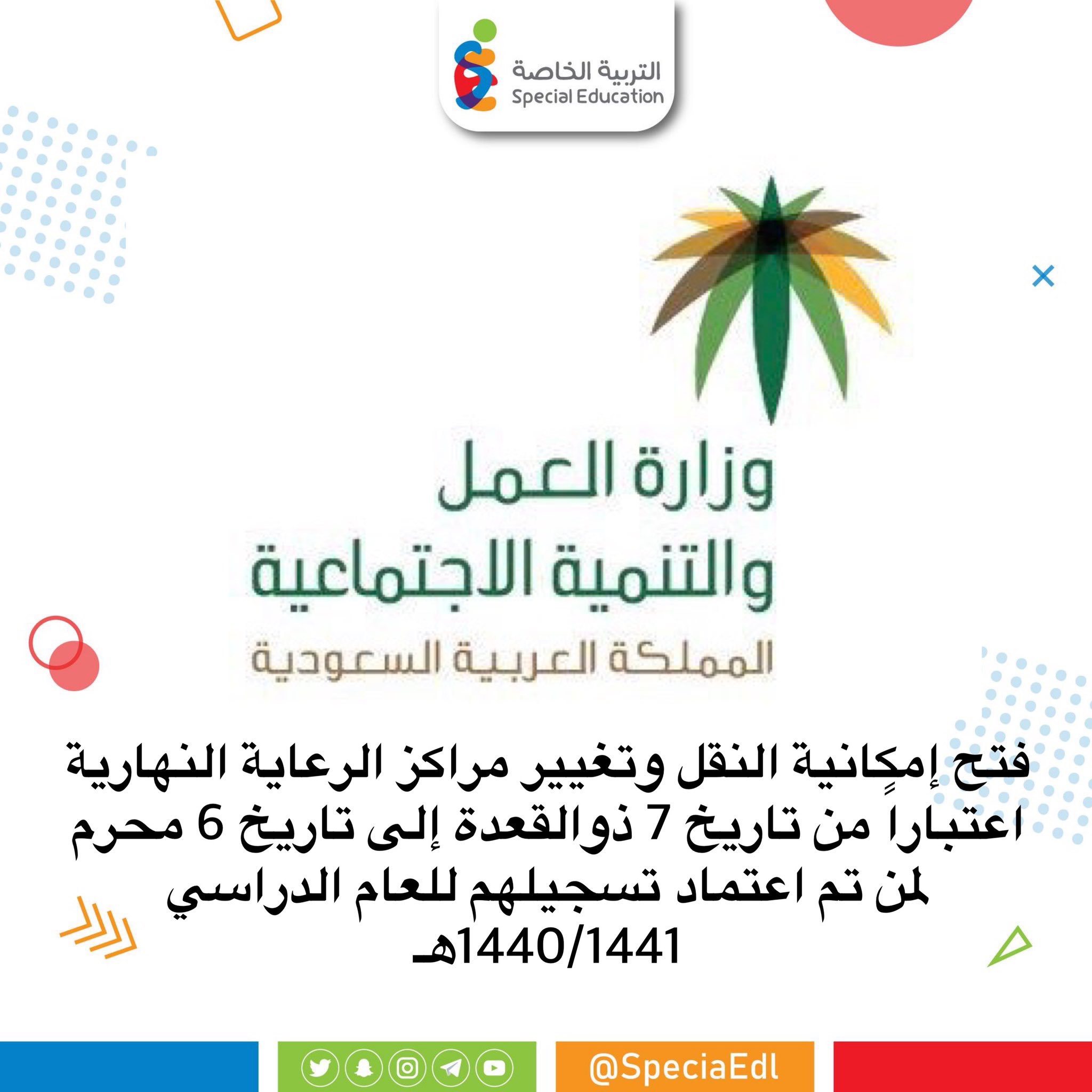 التربية الخاصة على تويتر وزارة العمل والتنمية الاجتماعية تعلن فتح إمكانية النقل وتغيير مراكز الرعاية النهارية اعتبارا من تاريخ 7 ذوالقعدة إلى تاريخ 6 محرم لمن تم اعتماد تسجيلهم للعام الدراسي 1440 1441هـ