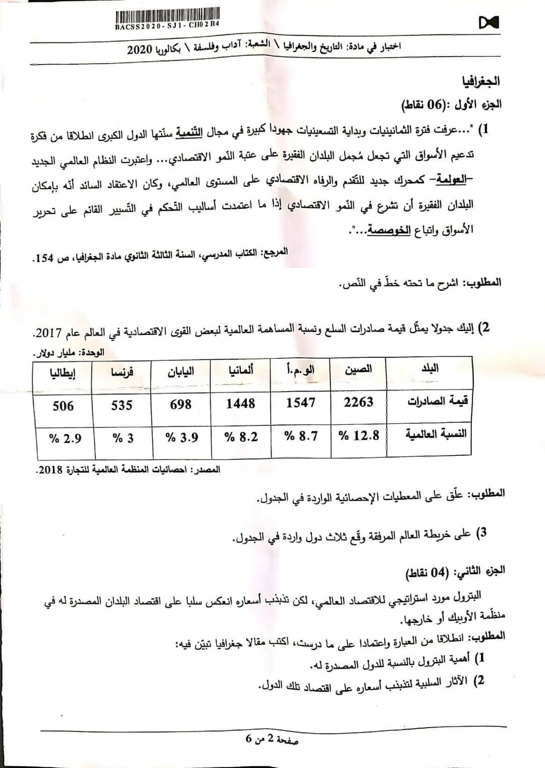 موضوع بكالوريا 2020 في التاريخ و الجغرافيا شعبة آداب و فلسفة